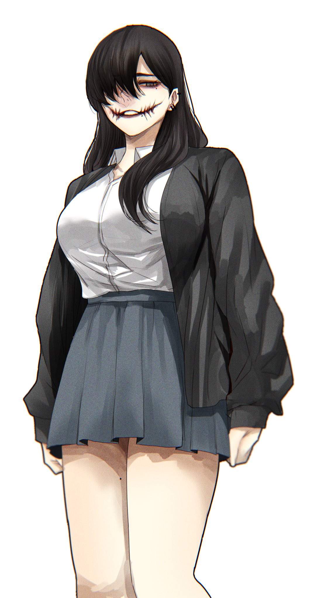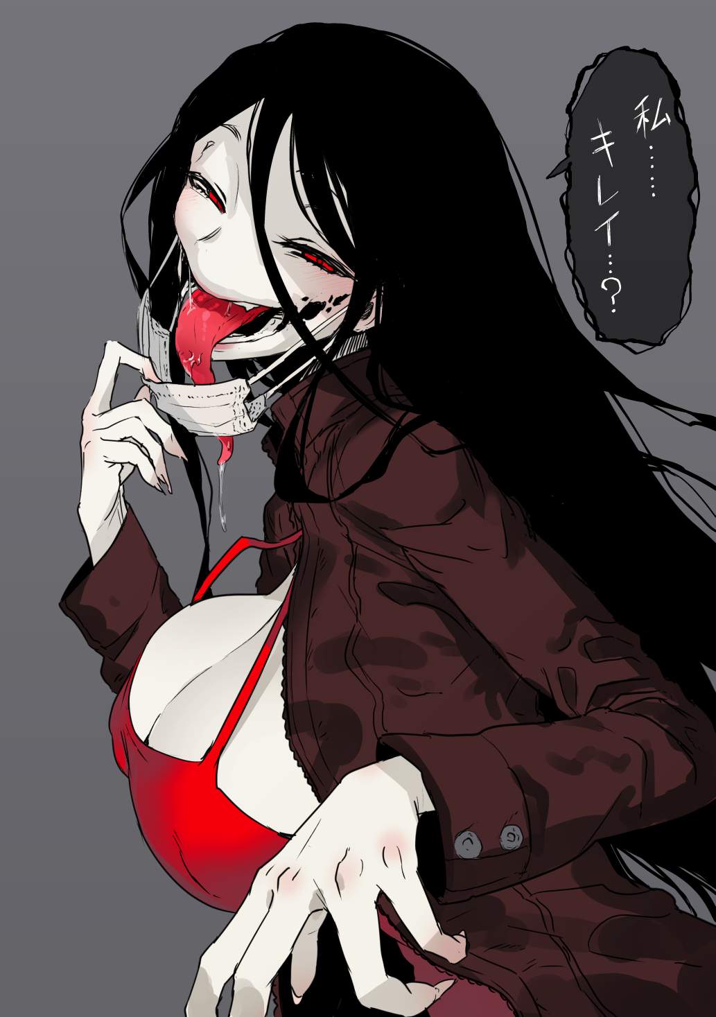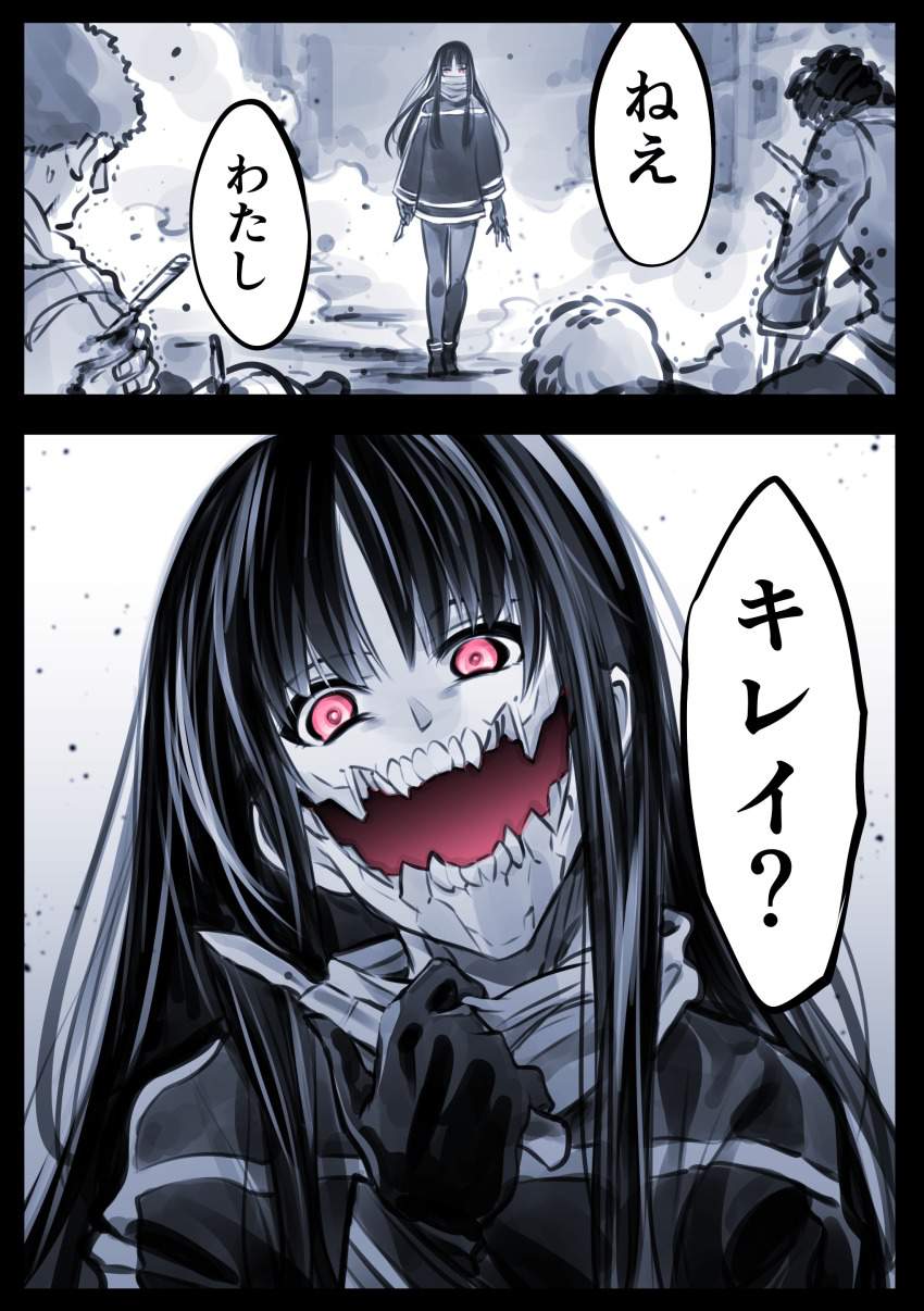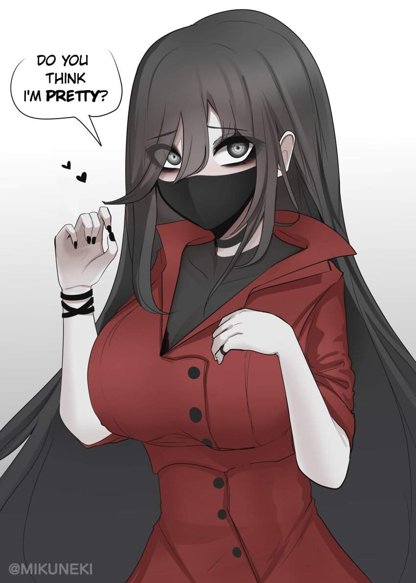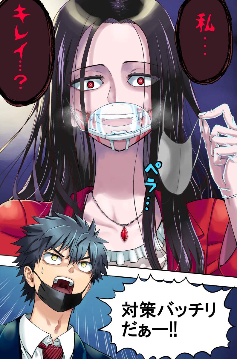 十古寺らみ昭和の時代にその名を全国に轟かせた都市伝説系怪異のレジェンド的存在、口裂け女の萌え画像です。昭和54年ごろから全国に広まった彼女、マスク姿で「私、きれい?」と問いかけ「きれい」と答えるとマスクを外して裂けた口を見せ「これでも?」と迫ってくる話で知られています。逃げる方法として「ポマード」と唱える、べっこう飴を渡すといった説もあり当時の子どもたちを震え上がらせました。近年ネットではこの都市伝説について「噂の広まり方を検証する為の社会実験だった」なんて説も唱えられていたりしますが真相は不明です。
