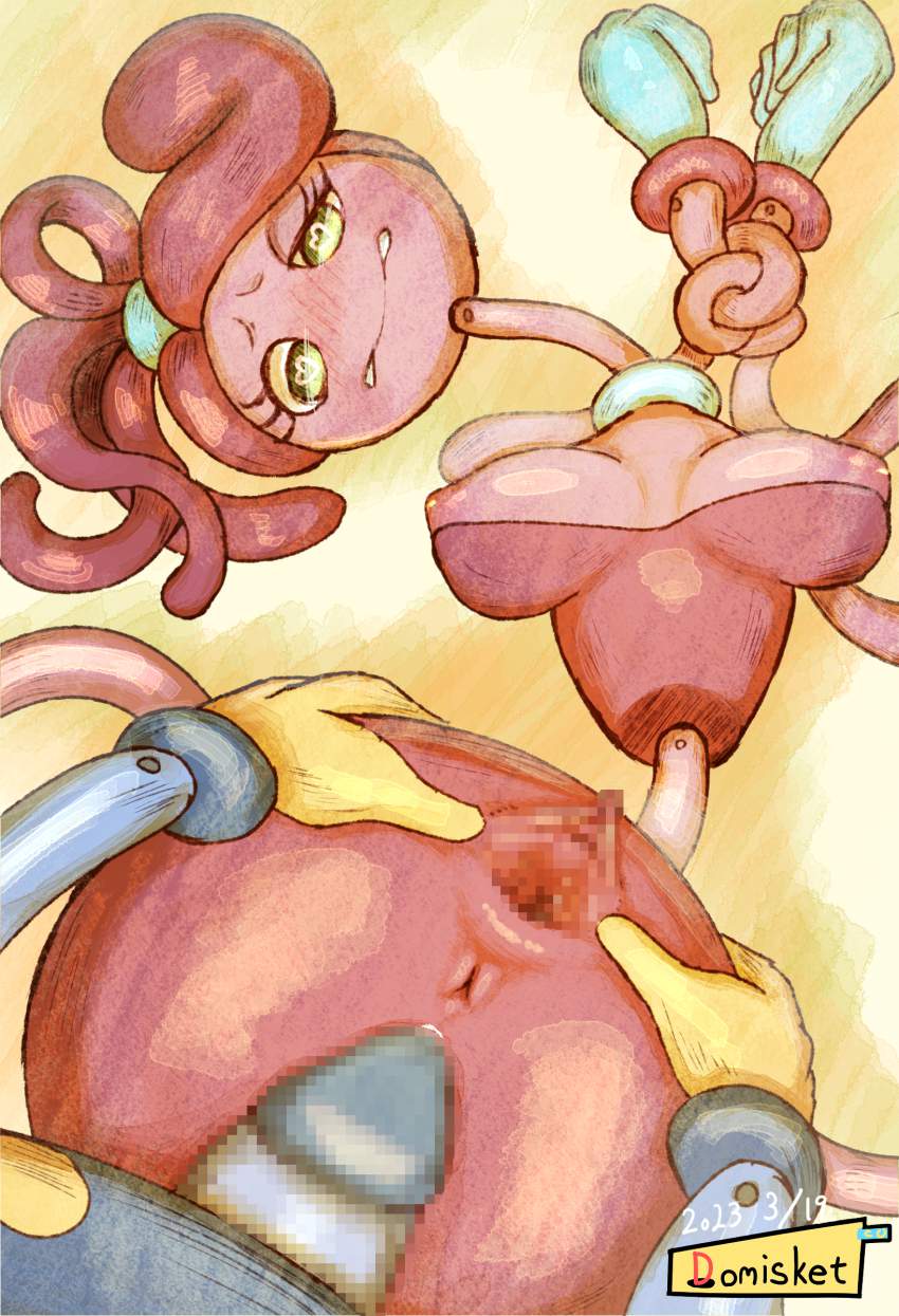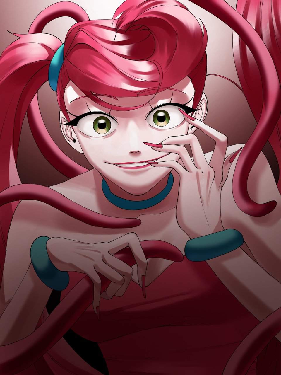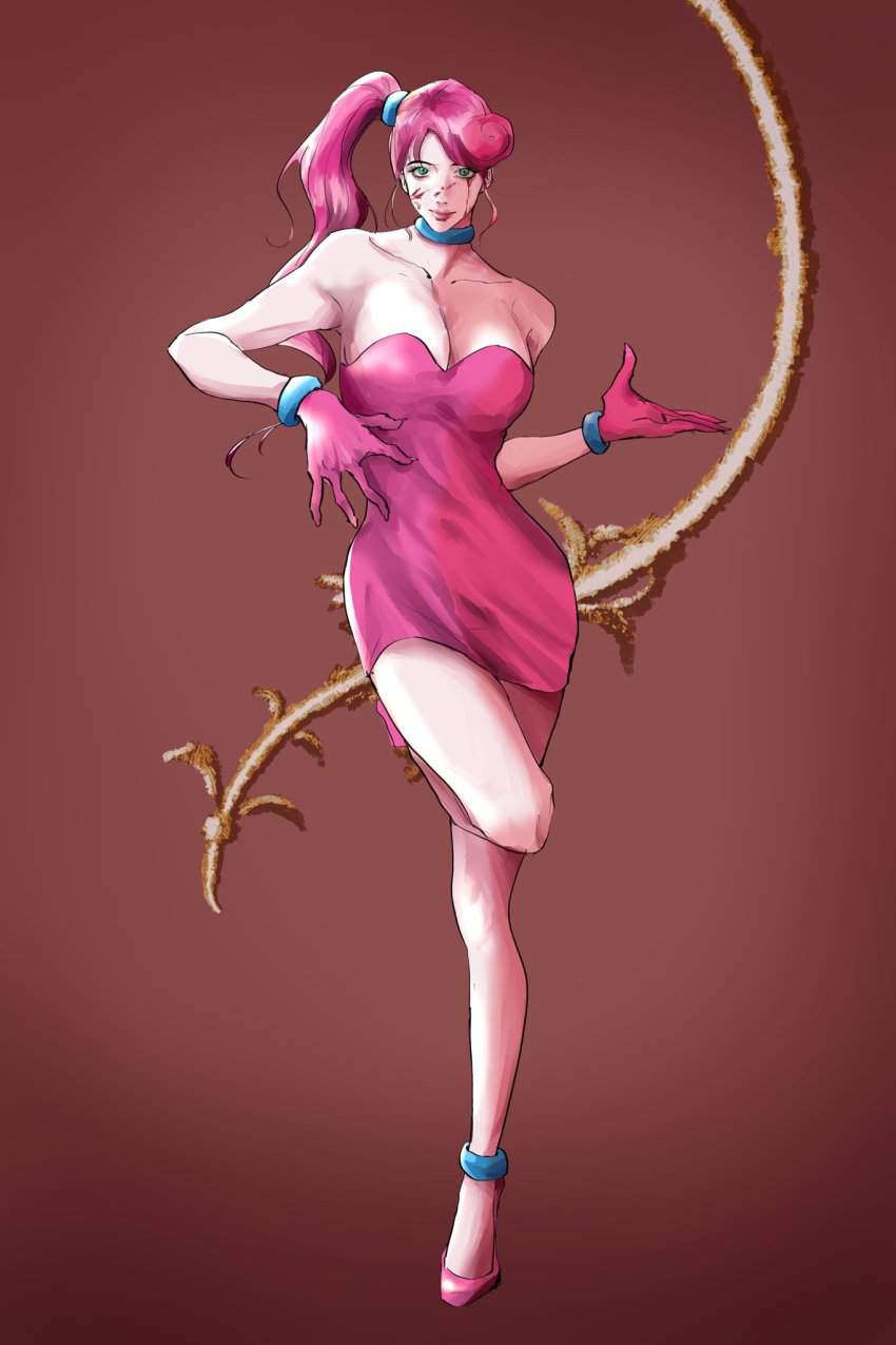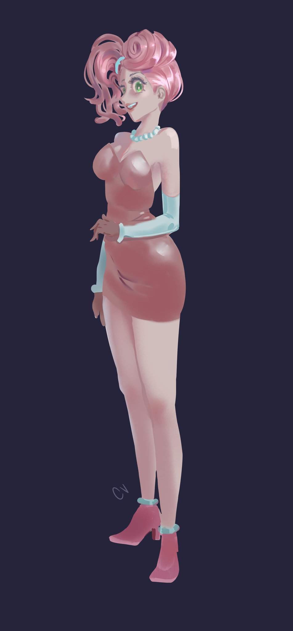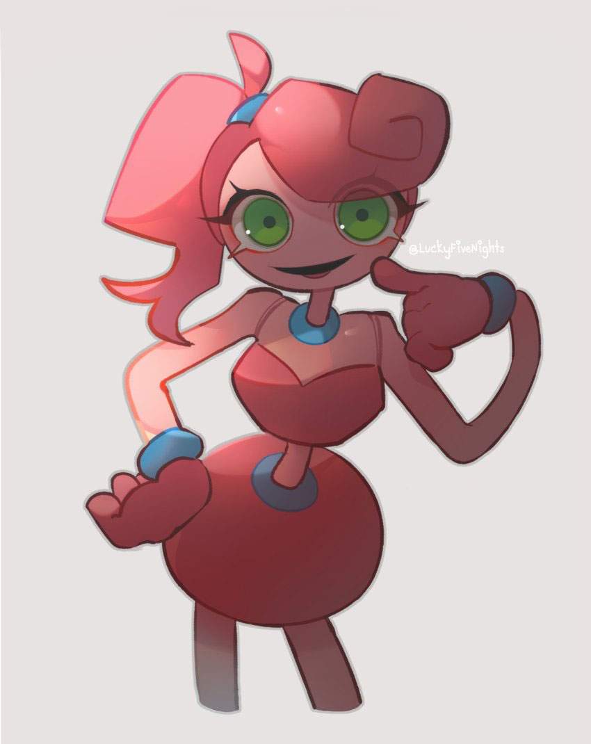 ホラーゲーム「Poppy Playtime」のチャプター2「FLY IN A WEB/クモの巣のハエ」に登場するMommyLongLegs(まみーろんぐれっぐす)のエロ画像です。ピンク色の体で飴細工のような髪と細長い手足、大きな緑色の目を持つ、女性の人形で”Mommy/マミー”という名前のとおり、夫(DaddyLongLegs/ダディー・ロングレッグス)と子供(BabyLongLegs/ベビー・ロングレッグス)がいるという設定のようです。